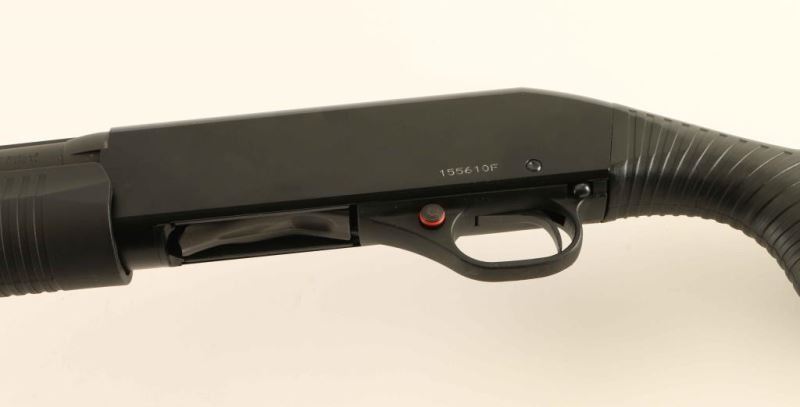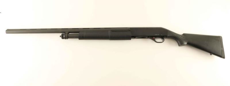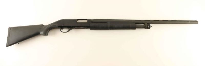 12 Ga Pump action Shotgun, made in China, 27" vent rib barrel with blued finish, bore bright, bead front sight, black synthetic stock with rubber recoil pad, rotary bolt, scattered finish on right rear of receiver. NRA Good Modern Firearm