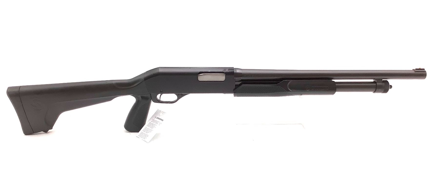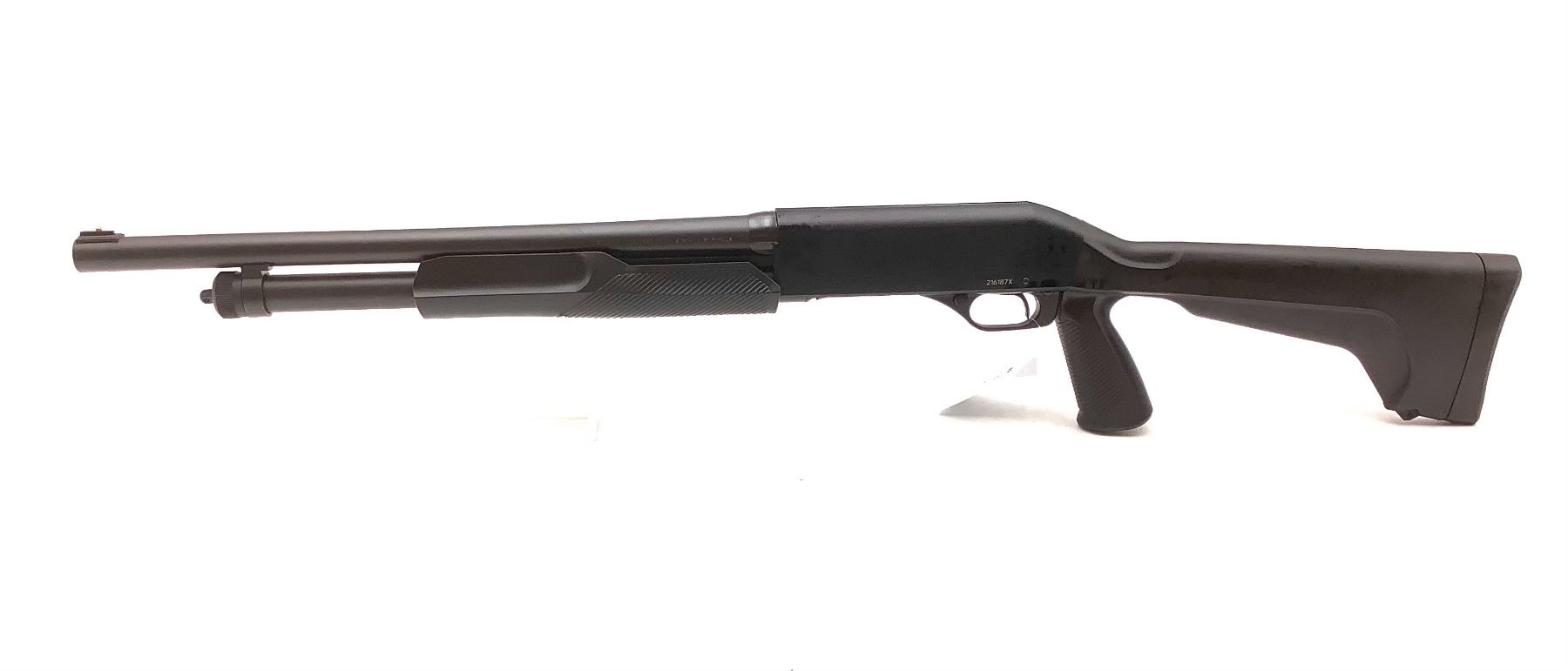 Stevens 320 Pump Action Shotgun 12 Ga 3" Chamber 18.5" Barrel Synthetic Stock, New. Fixed cylinder bore choke, bead sight. This is a non-restricted firearm.