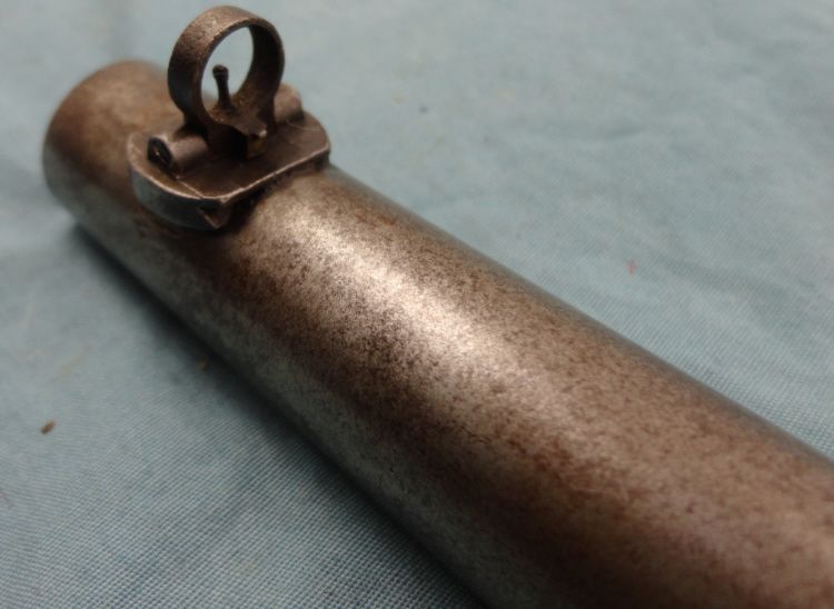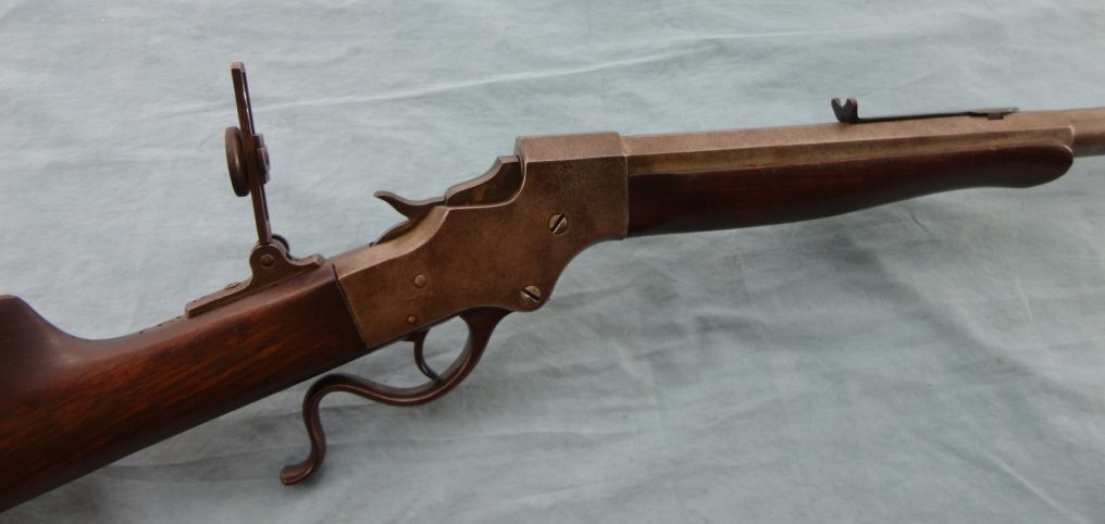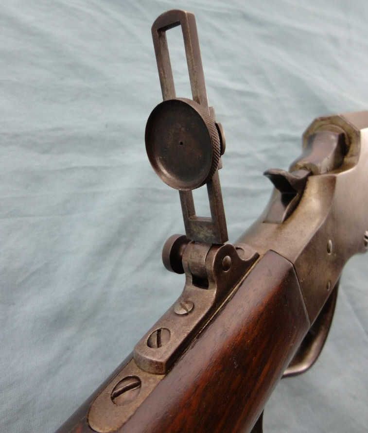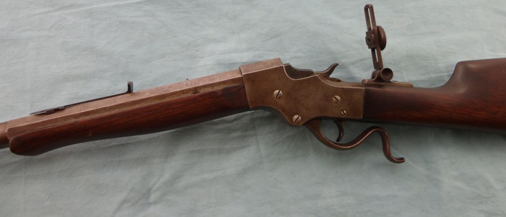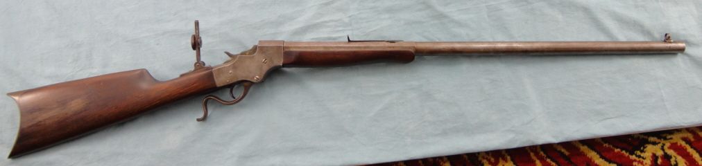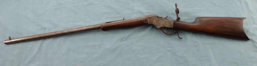 #35,778; 28.30 cal (Antique). 26" 1/2 round 1/2 oct. bbl. w/Beech front sight & rear Tang sight. Bore is bright & action is crisp. It has grey to brown overall patina on metal. Stock is in nice condition w/2 small cracks on hand guard near receiver.