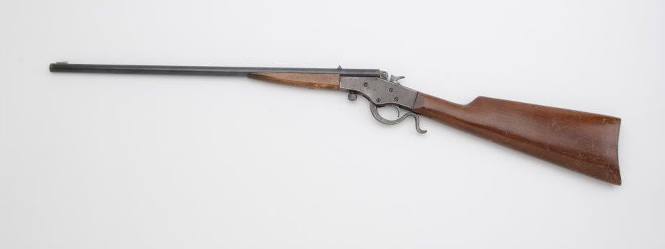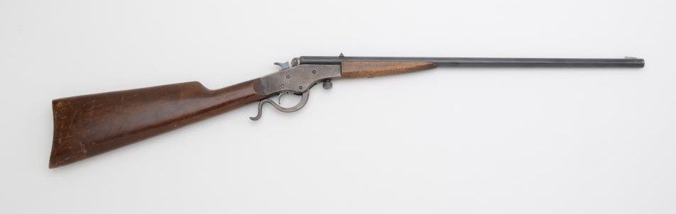 Stevens Crack Shot Model 26 boy’s rifle, .22LR cal., 20” barrel, #NVSN, in overall good condition with considerable muted finish on barrel, good bore, action and markings; good wood stocks with scattered scratches and mars from storage. Est.: $200-$400.