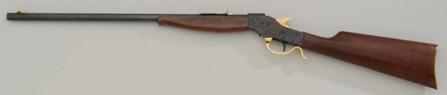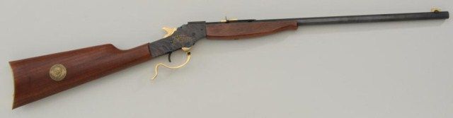 Stevens Favorite Model 71 single shot rifle, .22 short, long or LR cal., 22” octagon barrel, blue and case hardened finish, wood stocks with Joshua Stevens brass medallion inset into right side of butt stock,#06579SF. This gun is in overall fine condition showing the majority of its original finish, fine bore, action, markings and wood; gold accented lever, hammer, butt plate and sight parts. Est.: $100-$200.