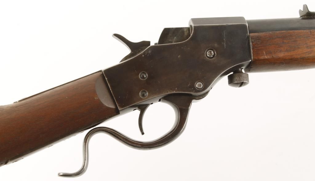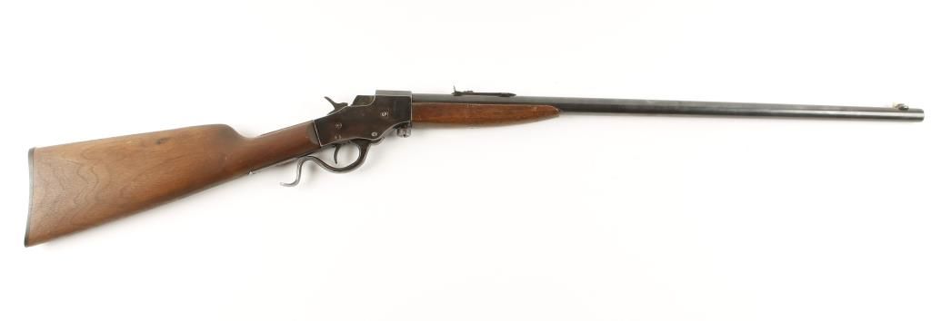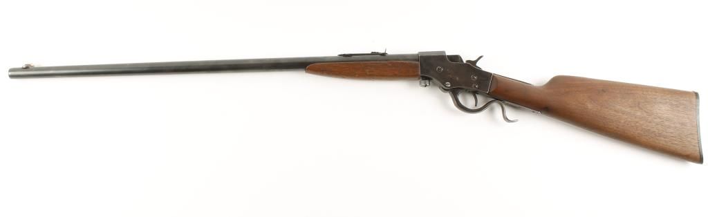 Single shot takedown rimfire "Favorite" rifle with 24" round barrel. Blued finish, plain straight grip wood stock and forend and open sights. Good bore and action. Condition: Good overall showing thinning bluing. Butt stock has been replaced and does not fit well. *Curio & Relic Firearm*