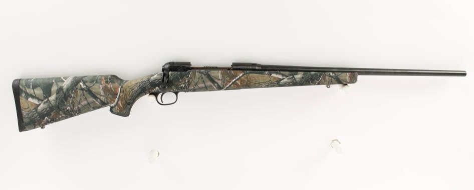 Stevens Mdl 200 Cal .270 SN:H016369Bolt action sporting rifle, 22" barrel, blued finish, checkered camouflage pattern synthetic pistol grip stock, No sights, drilled and tapped for scope, excellent bore and action. Includes box and manual.Condition: Near perfect.