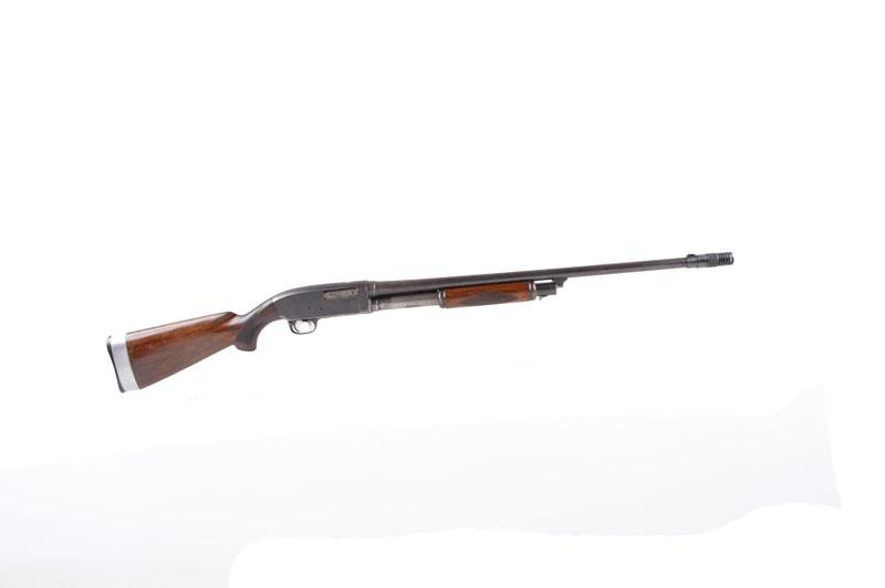 Stevens Mdl 620 16 ga SN:3382 Pump action field grade shotgun with takedown frame. Blued finish, checkered pistol grip stock and round pump handle with metal stock extension added to the butt of the stock. 25" barrel with Poly Choke added, good bore andPump action field grade shotgun with takedown frame. Blued finish, checkered pistol grip stock and round pump handle with metal stock extension added to the butt of the stock. 25" barrel with Poly Choke added, good bore and action.Condition: Good to very good with blue generally starting to thin and completely worn from the magazine under the barrel, stock is good with the addition but the pump handle has a slight crack.