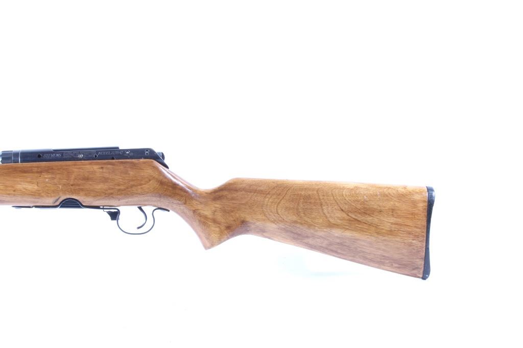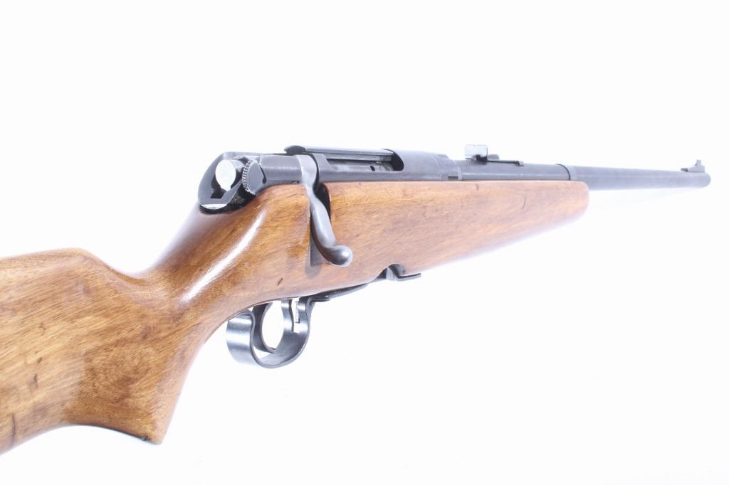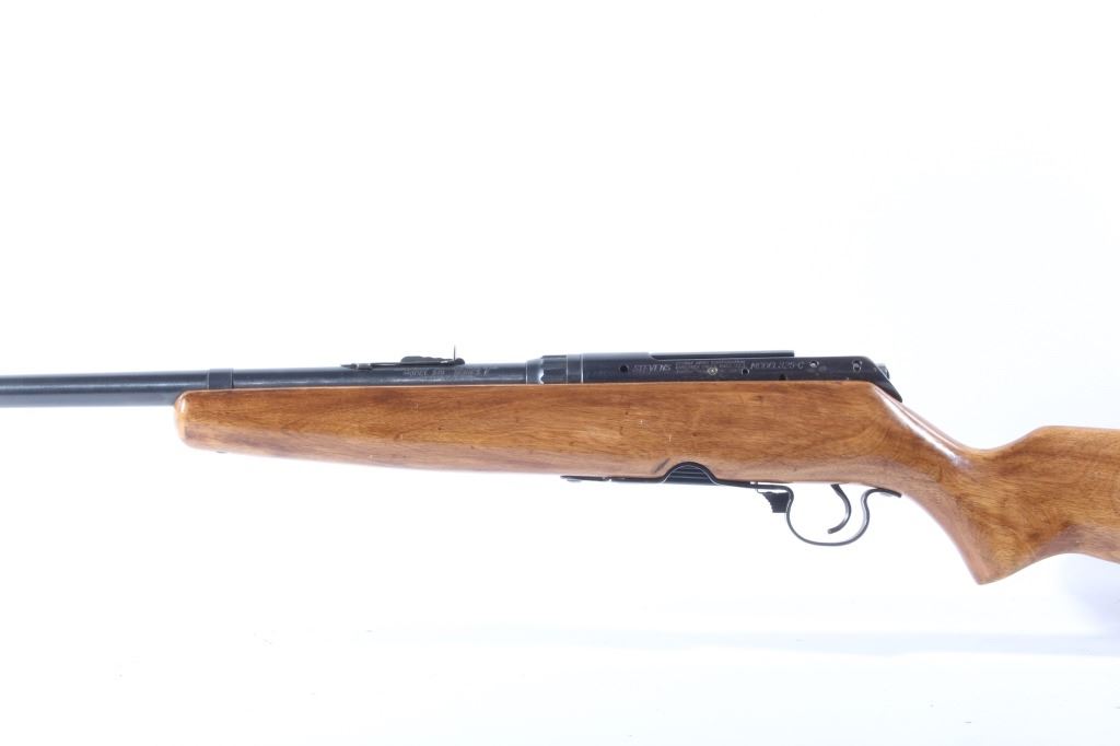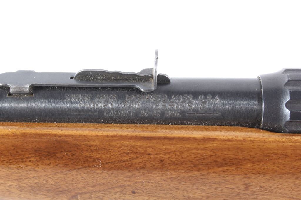 Offered for sale is a Stevens Model 325-C/340 Series E .30-30 Bolt Action Rifle. The rifle features a 22" barrel, one 3 round magazine, hardwood stock, adjustable rear sight, and blue'd finish. This rifle is in good condition, with handling marks and wear from use. The receiver is drilled and tapped and the butt pad is broken. The mechanics function well. The bore is shiny with strong rifling. This is a Curio & Relic firearm. FF Ltransfer or NICS background check required. No serial number