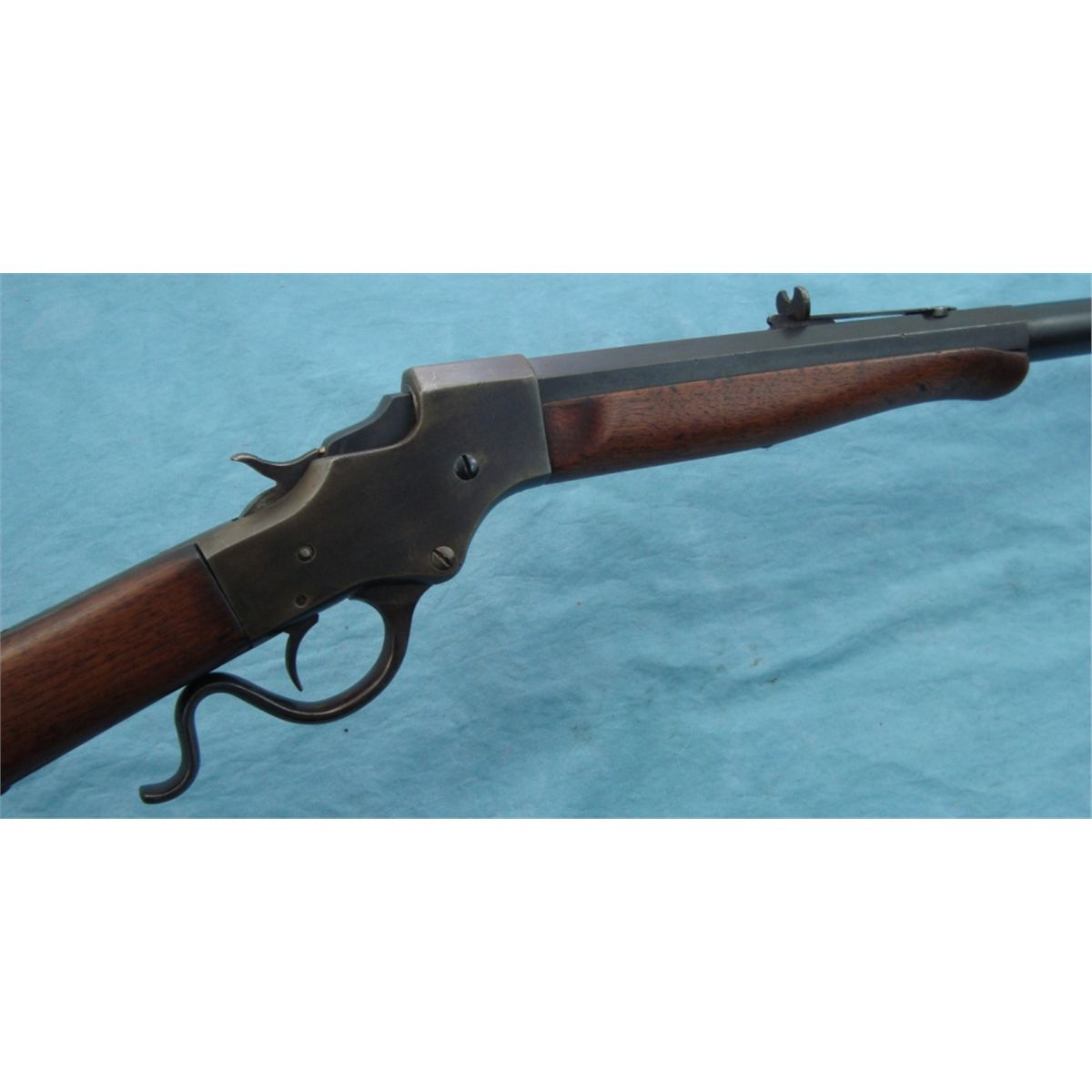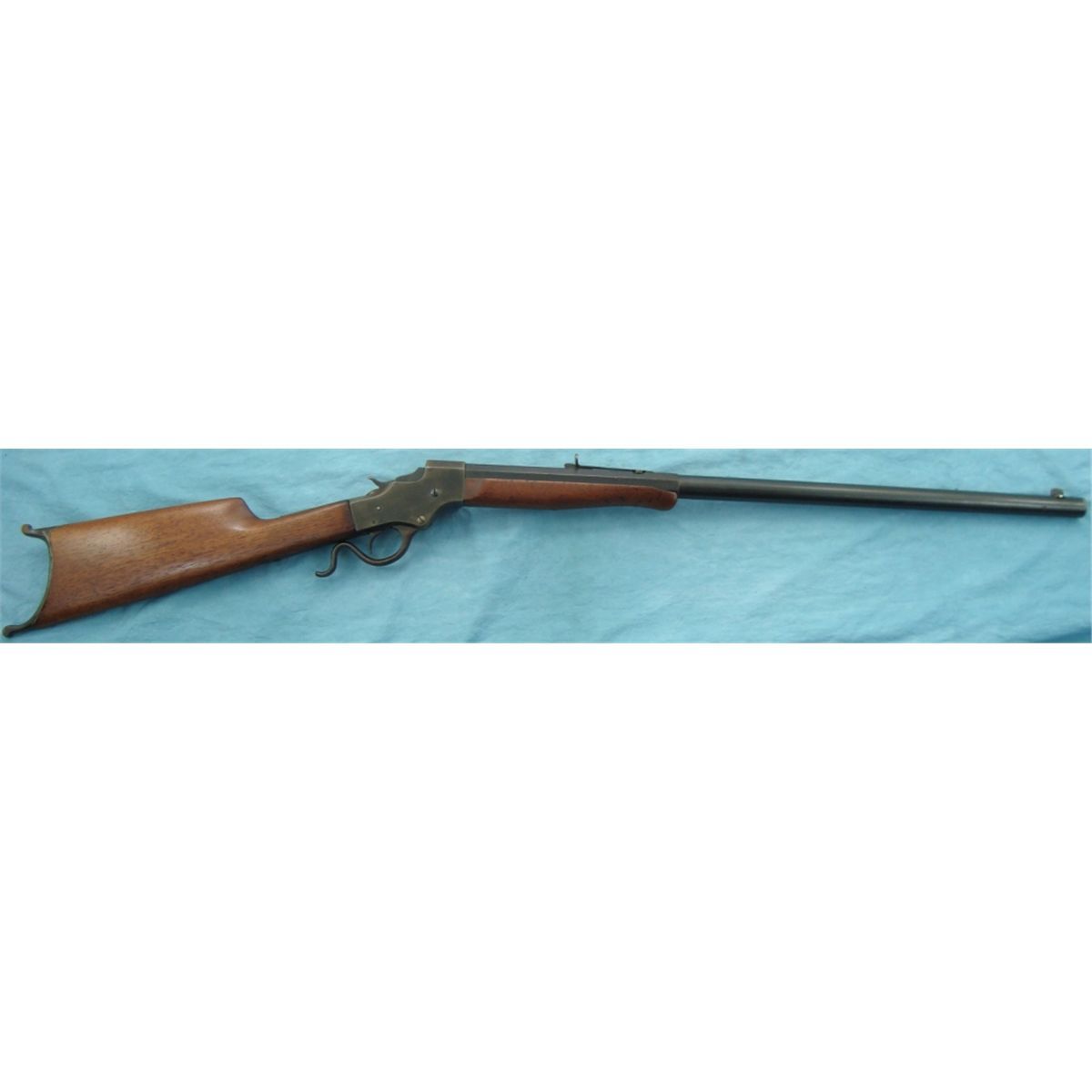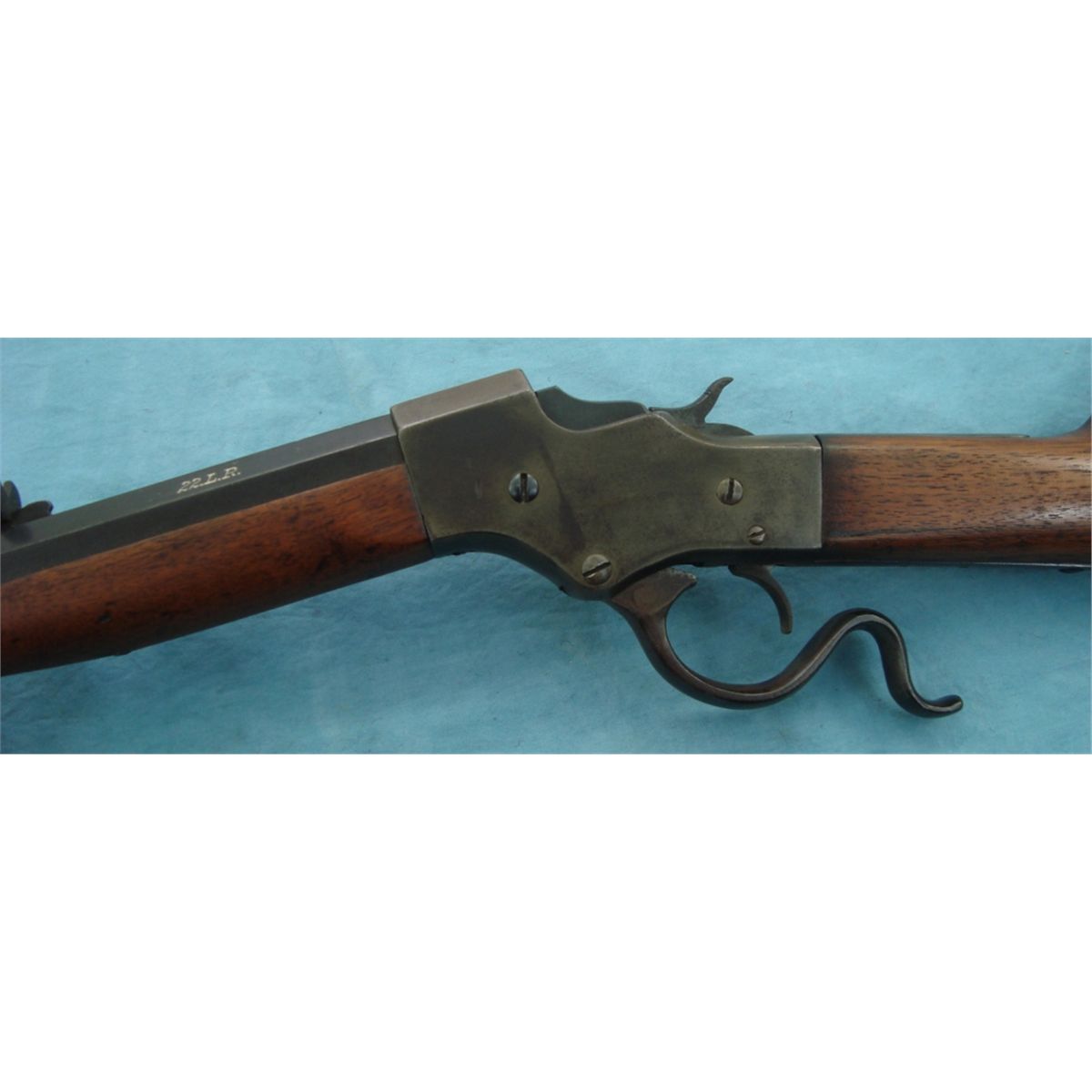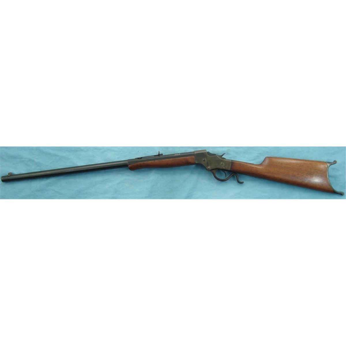 #52039; 22 LR w/26" half round half oct. bbl. Showing good blue but dark bore. Action is loose. Nice walnut stock w/Swiss style butt plate.