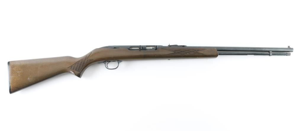 Semi-automatic rifle chambered in .22 LR, Based on the Model 80. Manufactured for a few years back in the 70's, 20" round barrel with sporting sights, Right mounted manual safety. One piece wood stock with checkering on the forearm and grip. Plastic buttplate. Receiver grooved grooved for optics. Fed from tube magazine. Bore is very good/bright, Wood is very good with minor scratches. Blue is about 96% with some scratches/rubs. NRA condition-Very Good. Modern Firearm.