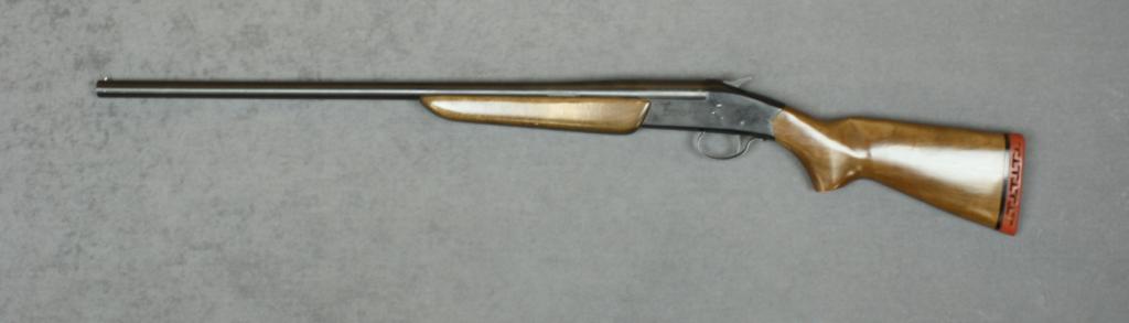 Stevens Model 940D tip-up single shot shotgun, 20 gauge, 26” barrel, black finish, smooth wood stocks with red hard rubber butt pad, #NVSN. This gun is in overall excellent condition showing approx. 98% originalfinish, very good bore, action and markings, good wood with some scattered mars and some loss of finish at the semi-pistol grip. Est.: $100-$200.