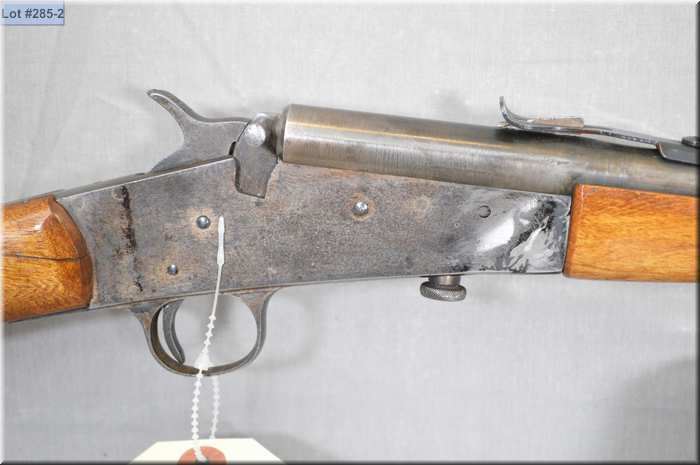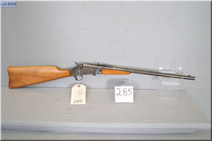 Stevens Model Crack Shot .22 LR cal single shot falling block Rifle w/ Lakefield barrel cut down to 18 3/4" [ faded blue finish, stock cracked right hand side by wrist, good forewood ] Ser # Nil