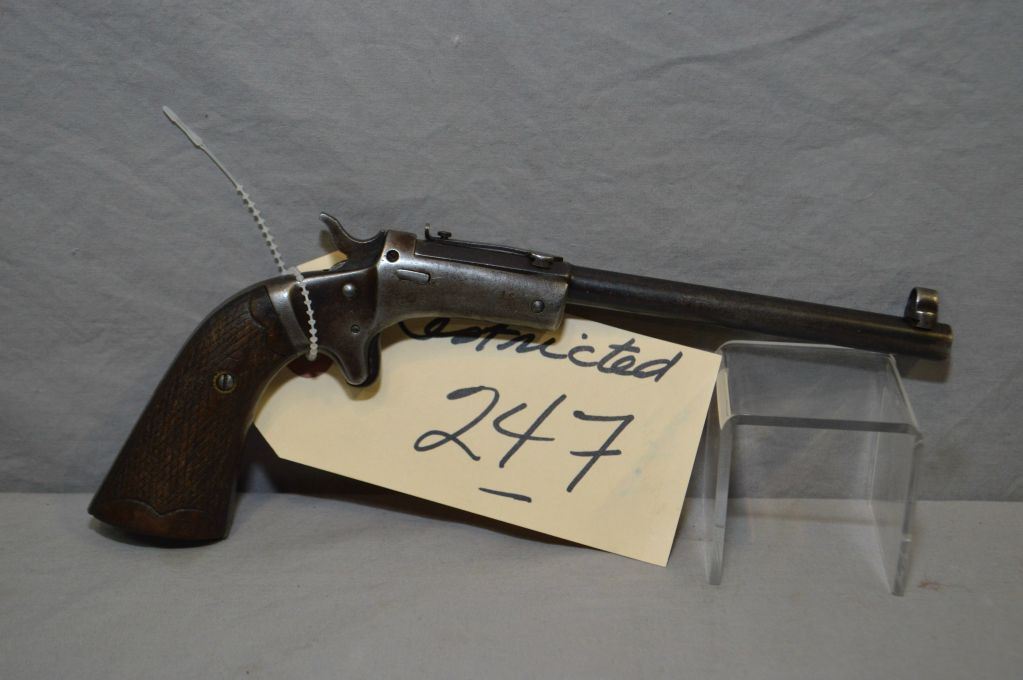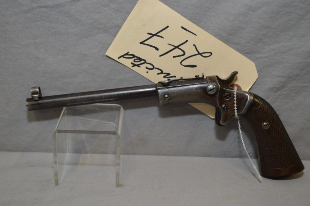 Stevens Model Diamond 43 2nd Issue .22 LR Cal Single Shot Pistol w/152 mm bbl [ fading blue finish turning brown on frame & back strap, barrel sights, checkered walnut grips ] Ser # 49926 Restricted Handgun Cert # 13956363