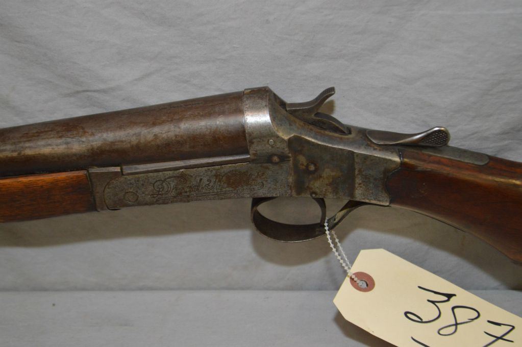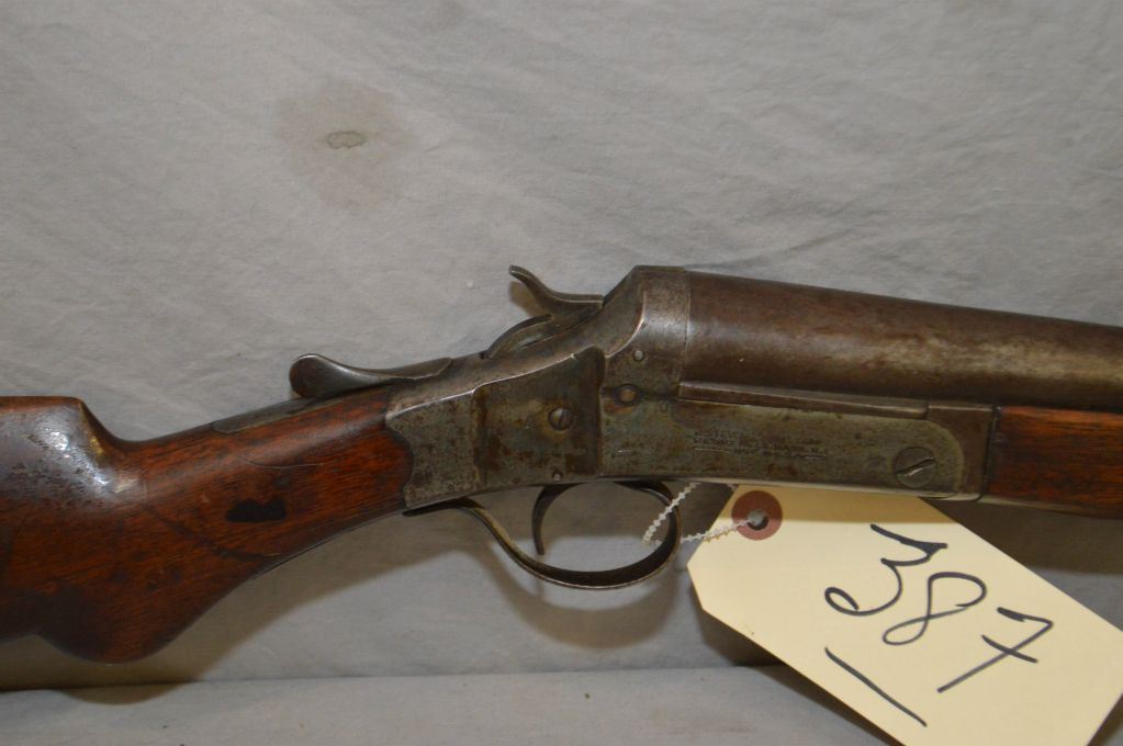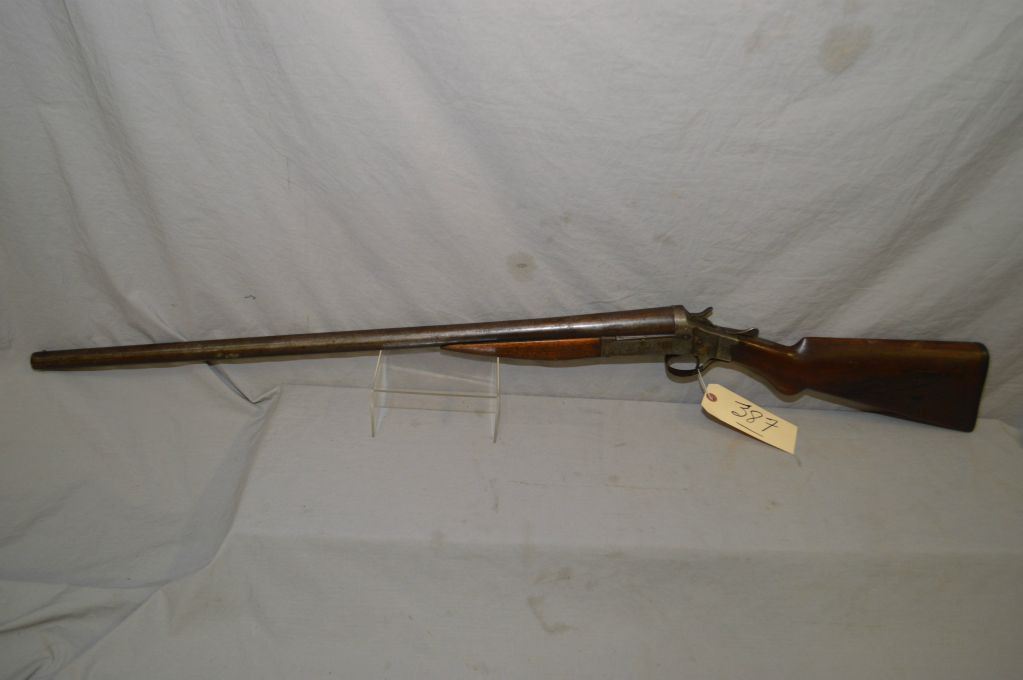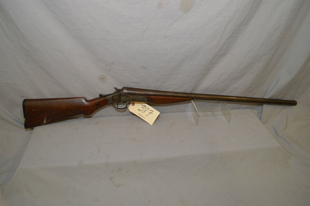 Stevens Model Dreadnaught .12 Ga Single Shot Break Action Shotgun w/ 30" bbl [ traces of patchy blue finish turning brown, rounded pistol grip stock, with Stevens butt plate, crack in forend, from screw back to frame ] Ser # Nil
