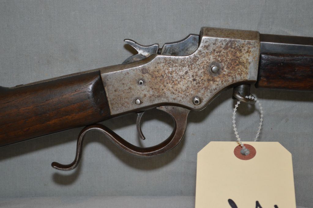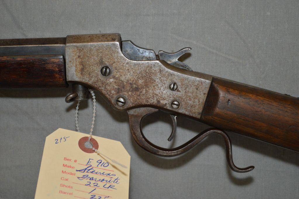 Stevens Model Favorite .22 LR cal Single Shot Falling Block Rifle w/ 22" part oct bbl [ blue finish turning brown w/barrel sights, receiver flaking & shows some rust, butt stock has chip out of comb, missing the plate, fair forend, (182) ] Ser # E 910