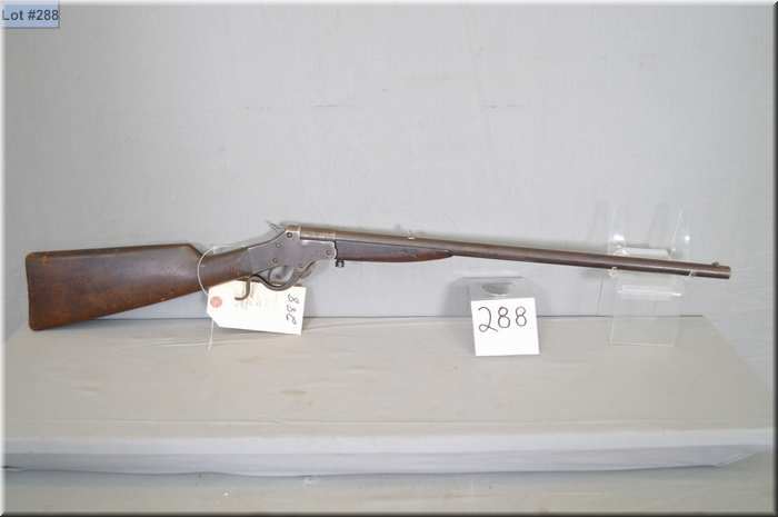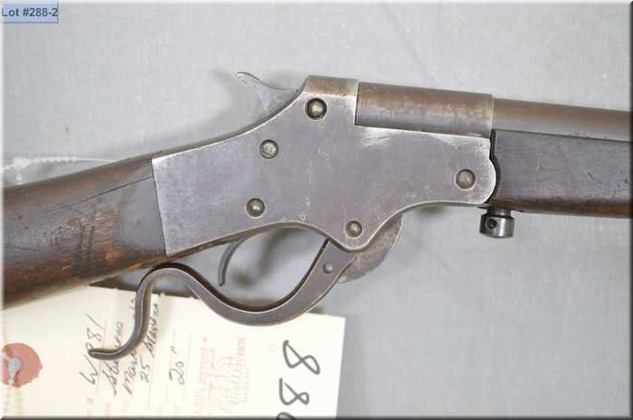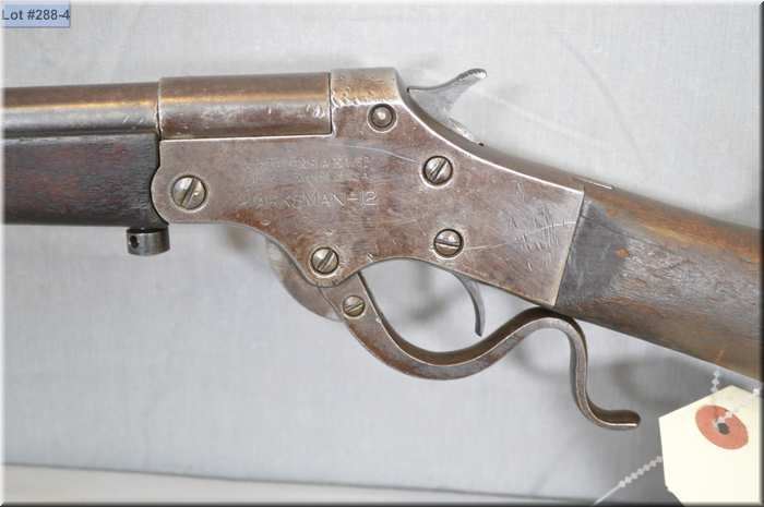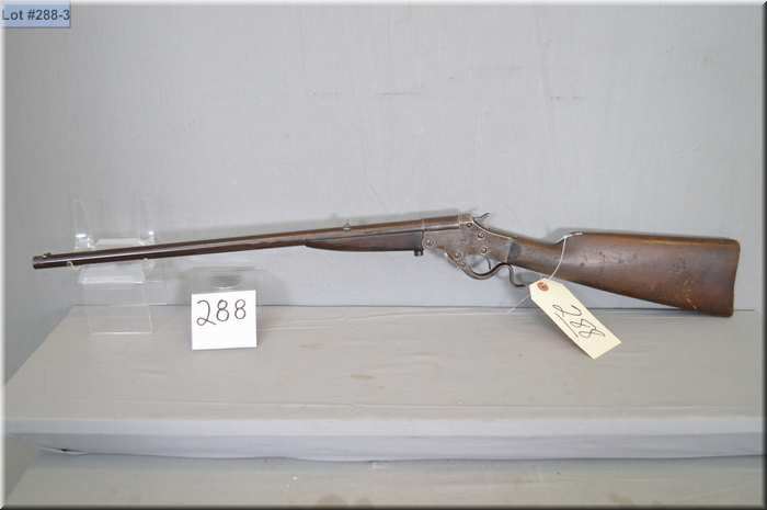 Stevens Model Marksman - 12 . 25 Stevens cal single shot break action Rifle w/ 20" bbl [ patchy blue finish turning brown, cracked wood , missing butt plate ] Ser # W981