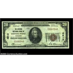 Stevens Point, WI - $20 1929 Ty. 1 The Citizens NB Ch. # 4912A high grade small size example from this much sought after location. Very Fine+. Important notice: Heritage usually auctions material at the rate of 200-250 lots per hour. On some occasions eBay Live bid software or the Internet may not be able to keep up with the pace of the auction. We recommend placing a realistic absentee bid now as insurance to avoid disappointment. Occasionally the auctioneer may eliminate or reject an eBay Live bid, and the auctioneer may also reopen a lot after the close of the eBay live bidding (usually because we missed an audience bid), and may reject your bid even if it shows you as the winning bidder. By bidding via eBay Live, you agree that Heritage may award the lot to another bidder at its sole discretion under the circumstances described above or any other reasonable circumstances. Also please note that all Heritage lots purchased through eBay Live carry a 20% Buyer's Premium. Please make sure you read the Terms and Conditions before you bid.