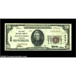 Stevens Point, WI - $20 1929 Ty. 1 The First NB Ch. # 3001An attractive example from this avidly col