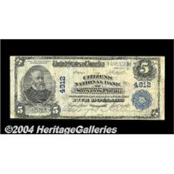 Stevens Point, WI - $5 1902 Plain Back Fr. 604 The Citizens NB Ch. # 4912Although neither of the two banks which issued here are truly scarce, this is one of the most avidly collected communities in the state, resulting in a torrent of bids every time we offer a note from this location. Very Good-Fine, with one short margin split. <BR><BR><B>Important notice:</B> Heritage usually auctions material at the rate of 200-250 lots per hour. On some occasions eBay Live bid software or the Internet may not be able to keep up with the pace of the auction. We recommend placing a realistic absentee bid now as insurance to avoid disappointment. Occasionally the auctioneer may eliminate or reject an eBay Live bid, and the auctioneer may also reopen a lot after the close of the eBay live bidding (usually because we missed an audience bid), and may reject your bid even if it shows you as the winning bidder. By bidding via eBay Live, you agree that Heritage may award the lot to another bidder at its sole discretion under the circumstances described above or any other reasonable circumstances. Since eBay bids are not shown to us until we open the lot on the floor, we treat those bids just like floor bids. In most cases the floor responds before the eBay bid is presented to us, due to Internet lag time, so for consistency we have made it a policy that floor bids are always considered first over tie eBay live bids. Also please note that all Heritage lots purchased through eBay Live carry a 20% Buyer's Premium. Please make sure you read the Terms and Conditions before you bid. <BR><BR><B>IMPORTANT ANNOUNCEMENT ABOUT RESERVES:</B> Heritage now divulges all reserves on its web site 7 days before every auction. If you want to know whether the reserve on this lot has been met, and if not, what the reserve amount is, please visit this lot page on the HeritageCoin.com web site, or email: bid@HeritageGalleries.com