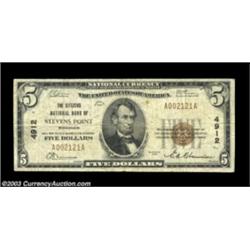 Stevens Point, WI - $5 1929 Ty. 1 The Citizens NB Ch. # 4912Evenly circulated Fine+ example from this sought after location. Important notice: Heritage usually auctions material at the rate of 200-250 lots per hour. On some occasions eBay Live bid software or the Internet may not be able to keep up with the pace of the auction. We recommend placing a realistic absentee bid now as insurance to avoid disappointment. Occasionally the auctioneer may eliminate or reject an eBay Live bid, and the auctioneer may also reopen a lot after the close of the eBay live bidding (usually because we missed an audience bid), and may reject your bid even if it shows you as the winning bidder. By bidding via eBay Live, you agree that Heritage may award the lot to another bidder at its sole discretion under the circumstances described above or any other reasonable circumstances. Also please note that all Heritage lots purchased through eBay Live carry a 20% Buyer's Premium. Please make sure you read the Terms and Conditions before you bid.