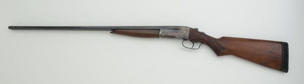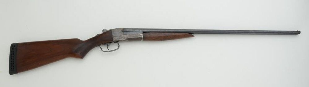 Stevens Springfield SxS hammerless shotgun, .410 gauge, 26” barrels, blue and case hardened finish, checkered wood stocks, #X74238 in overall very good condition showing considerable original muted bluefinish on the barrels with some scattered spots of erosion, considerable original case colors on the receiver, fine bores, crisp actions, very good wood with Supreme brand hard rubber butt pad. Est.: $250-$500.