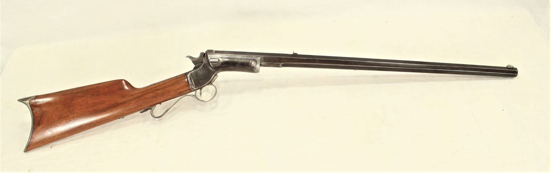 A nice Stevens Tip-Up style rifle, caliber .25 rim fire, known as The Ladies rifle, having walnut stock, blued finish barrel , and nickel frame.