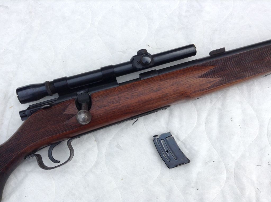 Stevens Model 416 .22LR with scope, bull barrel, clip