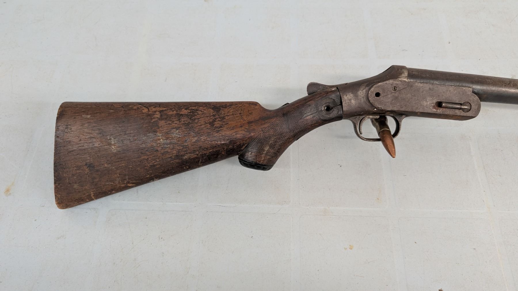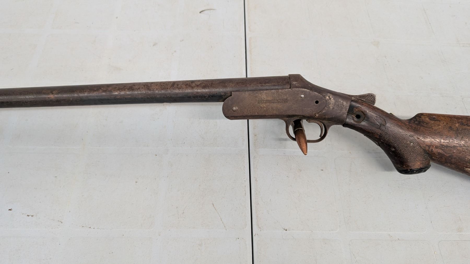 break action single shot. This is a parts gun. missing some parts, retains others. could be used asdonor receiver for lot 208.
