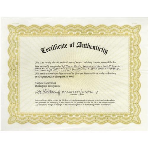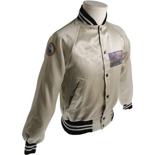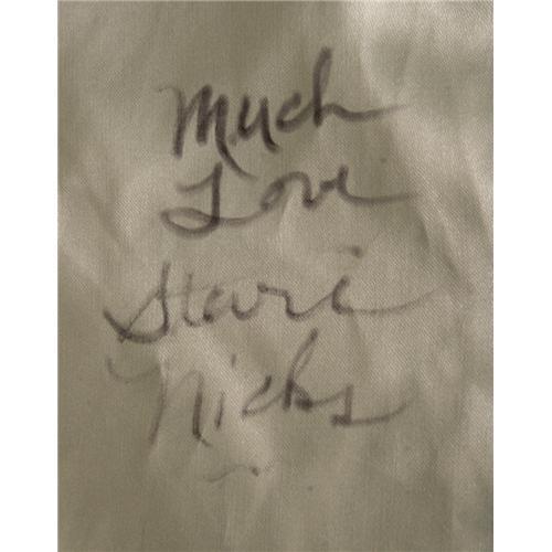 <B>Stevie Nicks Signed Tusk Tour Jacket.</B></I> Pearl-colored nylon jacket with black-and-white trim; has Fleetwood Mac's Tusk Tour patch over the left breast and is signed by Nicks in black marker on the right breast. Sized men's extra small. In Excellent condition. <I>Accompanied by a certificate of authenticity.</B></I><I>From the Robert Johnson Memorabilia Collection.</B></I><BR><BR><b>Shipping:</b> Clothing, Costumes & Jerseys (<a target="_blank" href="http://www.heritageauctions.com/common/shipping.php">view shipping information</a>)