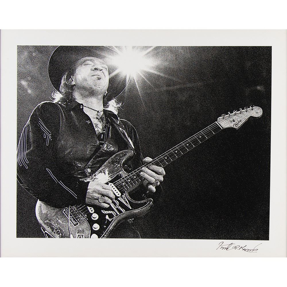 Photographic silver gelatin print entitled 'In the Light,' 19.5 x 15.5, depicting guitar legend Stevie Ray Vaughan performing on stage with his eyes closed, signed in the lower border in black felt tip by the photographer, Robert M. Knight. Framed and in fine condition.