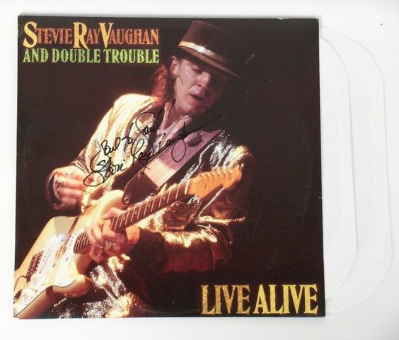 Since his death in 1990, autographs of Stevie Ray Vaughan are extremely rare, especially on album covers. This has Stevie's personal signature on his "Stevie Ray Vaughan And Double Trouble Live Alive" Album. In mint condition. Comes with a COA from Baseball Cards Movie-Collectables Etc.