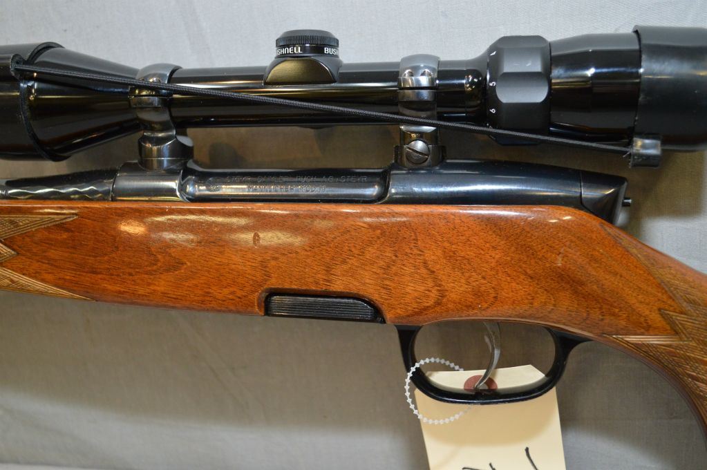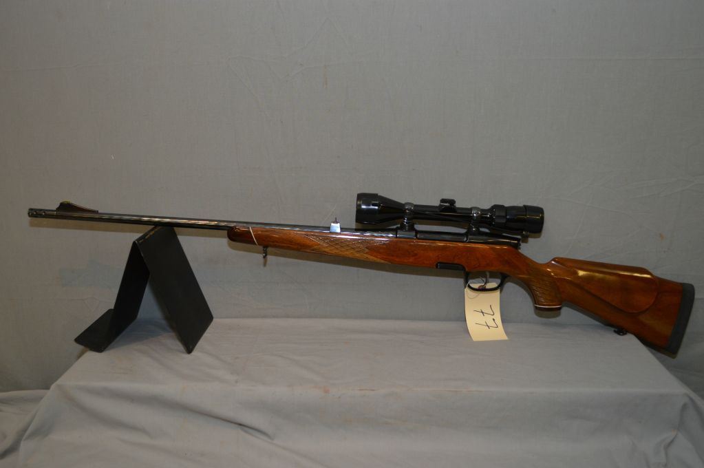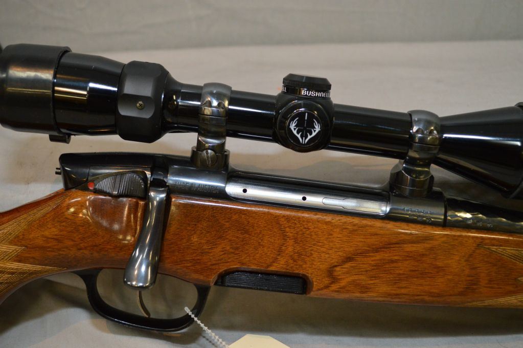Steyr Mannlicher Model M .30-06 Sprg cal Mag Fed Bolt Action Rifle w/ 23 1/2" Forged bbl w/screw on muzzle break [ appears v-good, barrel sights, also fitted w/ Bushnell 3 x 9 x 40 scope in Steyr rings, skip line checkered pistol grip stock w/rosewood caps, w/ Decelerator recoil pad , spoon bolt, sling swivels ] Ser # 16585