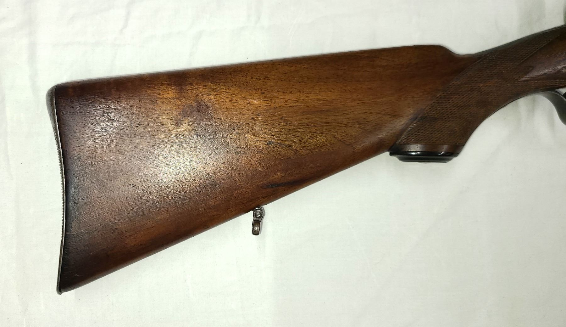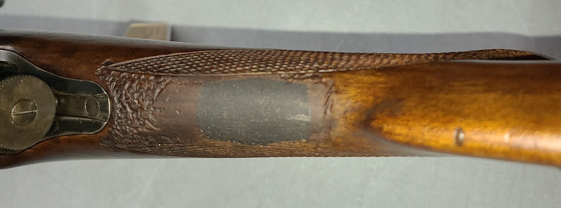 Stock Configuration & Condition: The stock is a one-piece checkered walnut full