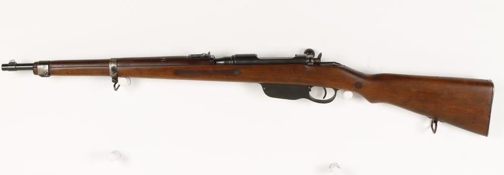 Austrian straight pull bolt action cavalry carbine with 19-1/2" barrel. Reblued finish with full length wood stock and upper handguard. Maintains original sights. Barrel bands show grind marks. Very good bore and action. Condition: Good to very good as refinished. *Curio & Relic Firearm*