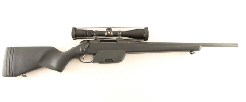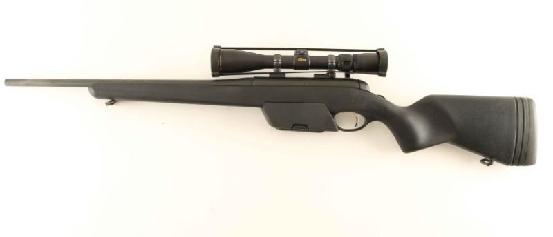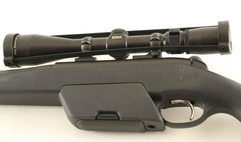 Austrian made magazine fed bolt action sporting rifle chambered in .308 Winchester. Features a matte black finish, cold hammer forged 20" heavy barrel without provisions for sights, Nikon Monarch 3-9x 40mm scope, adjustable trigger, three position rotary style safety, detachable 10 round magazine, enlarged bolt handle, cocked indicated, quick detach sling swivels, and black synthetic pistol grip shoulder stock with extensions & rubber recoil pad. Rifle exhibits approximately 99% of it's original finish showing few handling marks with no major wear observed. Action is smooth, bore is pristine, optics are sharp and the synthetic stock is fine. Condition is NRA Excellent. ***Modern Firearm***