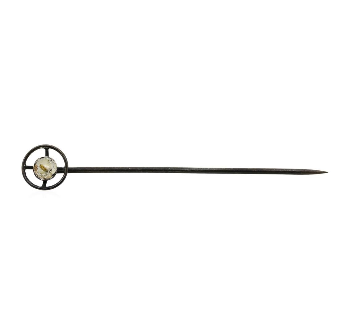 One stick pin with an empty setting featuring: silver weighing 1.3 grams.