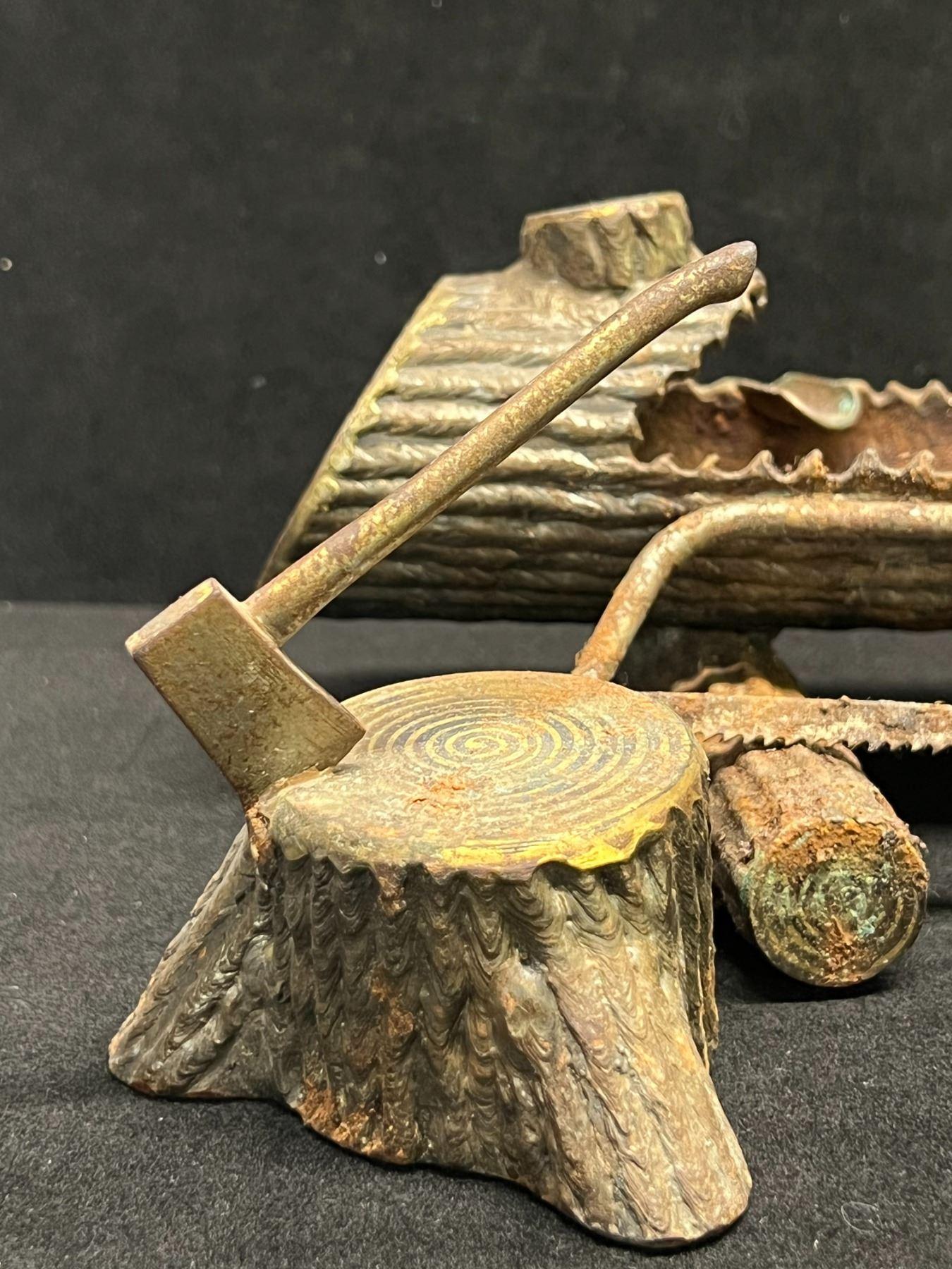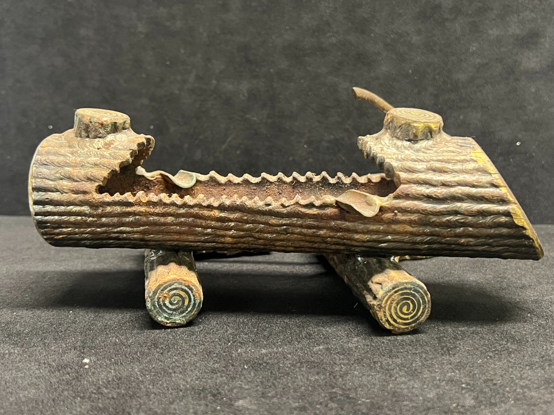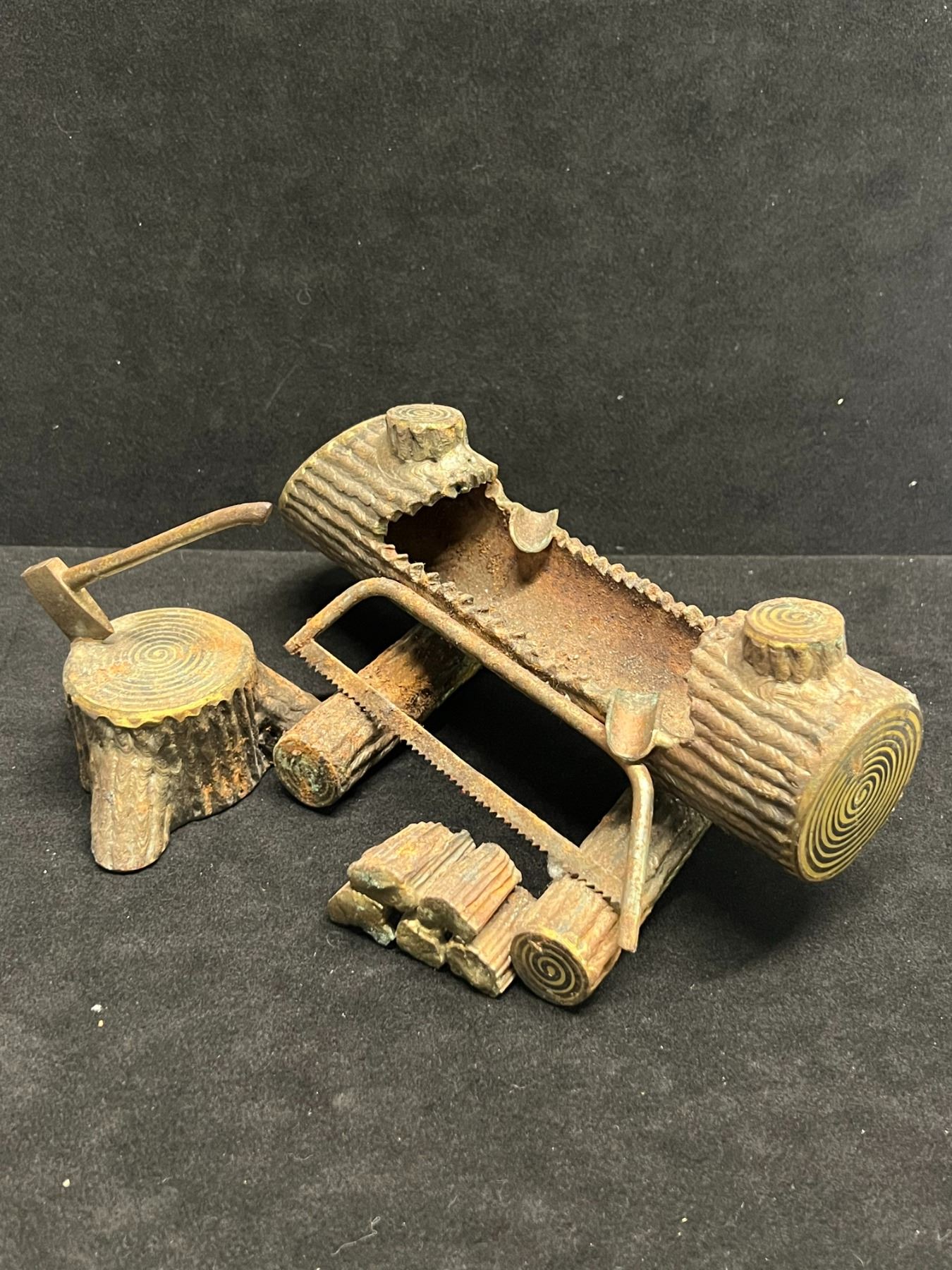 Stick Welded Folk Art Steel Log Ashtray (approx: 8"W 3.5"T & 6.25"D)