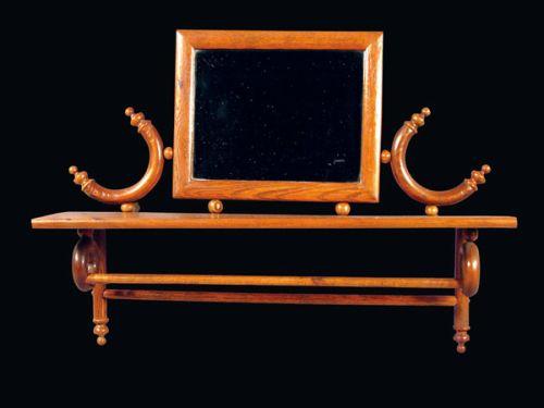 Stick and Ball Oak Shelf w/mirror. Excellent refinished condition. 20 X 16 inches.