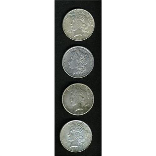 <B>Sticker Dollar Coins From California and Nevada.</B></I> Four silver dollars with stickers applied to the reverse from the following locations: <B>Souvenir of Calico Ghost Town </B></I>on a 1889-O Morgan dollar; <B>Calico Ghost Town Terumo, Calif.</B></I> on a 1922 Peace dollar; <B>Old Virginia Kitchen Famous For Food Since 1876, H.W. Riley, Owner Virginia City, Nevada</B></I> on a 1935 dollar; and a 1925 Peace dollar with a sticker from <B>I came from Wagon Wheel Saloon Lake Tahoe Highway 50 State Line Nevada. </B></I>These are neat collectibles that will come into their own in the near future.<BR><BR><b>Shipping:</b> Coins & Currency (<a target="_blank" href="http://www.heritageauctions.com/common/shipping.php">view shipping information</a>)