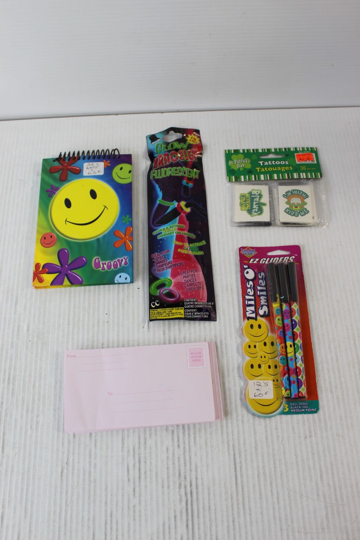 Stickers, Markers, Glow Bracelet, Envelopes, Plastic Insects, etc.