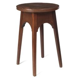 Stickley Brothers drink stand, #2615, circular copper top over splayed legs with wide apron, refinished, unsigned, 18” dia. x 28”h, very good condition