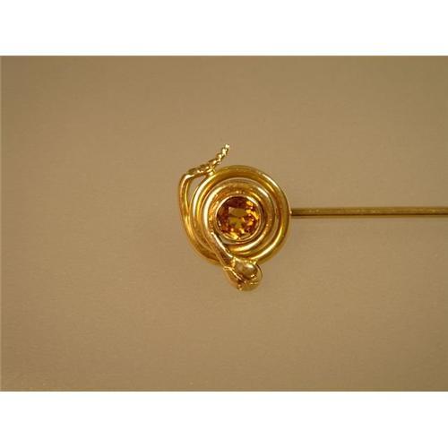<table width="100%" border="0" cellspacing="0" cellpadding="4"><tr><td><em> A SUPER STICKPIN IN THE FORM OF A SNAKE 15CT.AND GOLDEN CITRINE!</em></td></tr><tr> <td width="100%"> This is a very collectable stickpin!It is English circa 1900.It is goldsmith craftsmanship and is crafted in 15ct gold with a center golden citrine.The quality and condition is good. The stickpin measures 7.5cm - 3ins long. The width of the snake form is 10mm and the width from the head to the tail is 15mm. It weighs a total 2.5grms. It is very wearable and would be a super addition to any collection. </td></tr><tr> <td> </td></tr><tr> <td>Reference #: go1044</td></tr><tr><td>Condition:Good</td></tr><tr><td>Year:Circa 1900</td></tr><tr><td>Country:England</td></tr><tr><td>Maker:Unknown</td></tr><tr><td>Height:3</td></tr><tr><td>Depth:15</td></tr><tr><td>Width:10</td></tr><tr><td>Weight:2.5</td></tr><tr><td>Title:Stickpin 15ct. Snake with Golden Citrine</td></tr><tr><td>Style:Snake</td></tr><tr><td>Materials:15ct. gold and golden citrine</td></tr><tr><td>Type:Snake</td></tr><tr><td>Location:Munich Germany</td></tr></table>