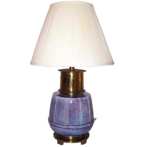 Condition: Very good condition with minor patina to brass, crazing to pottery. No major imperfections.