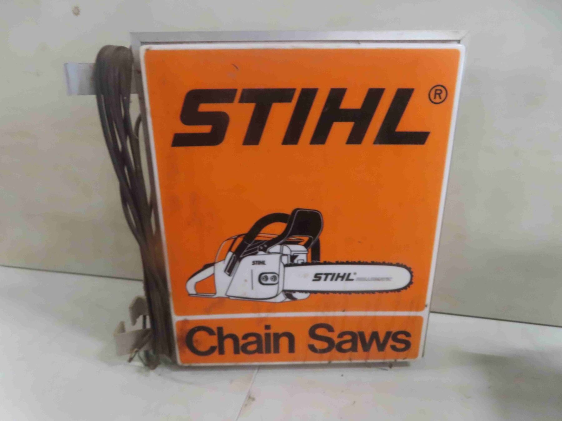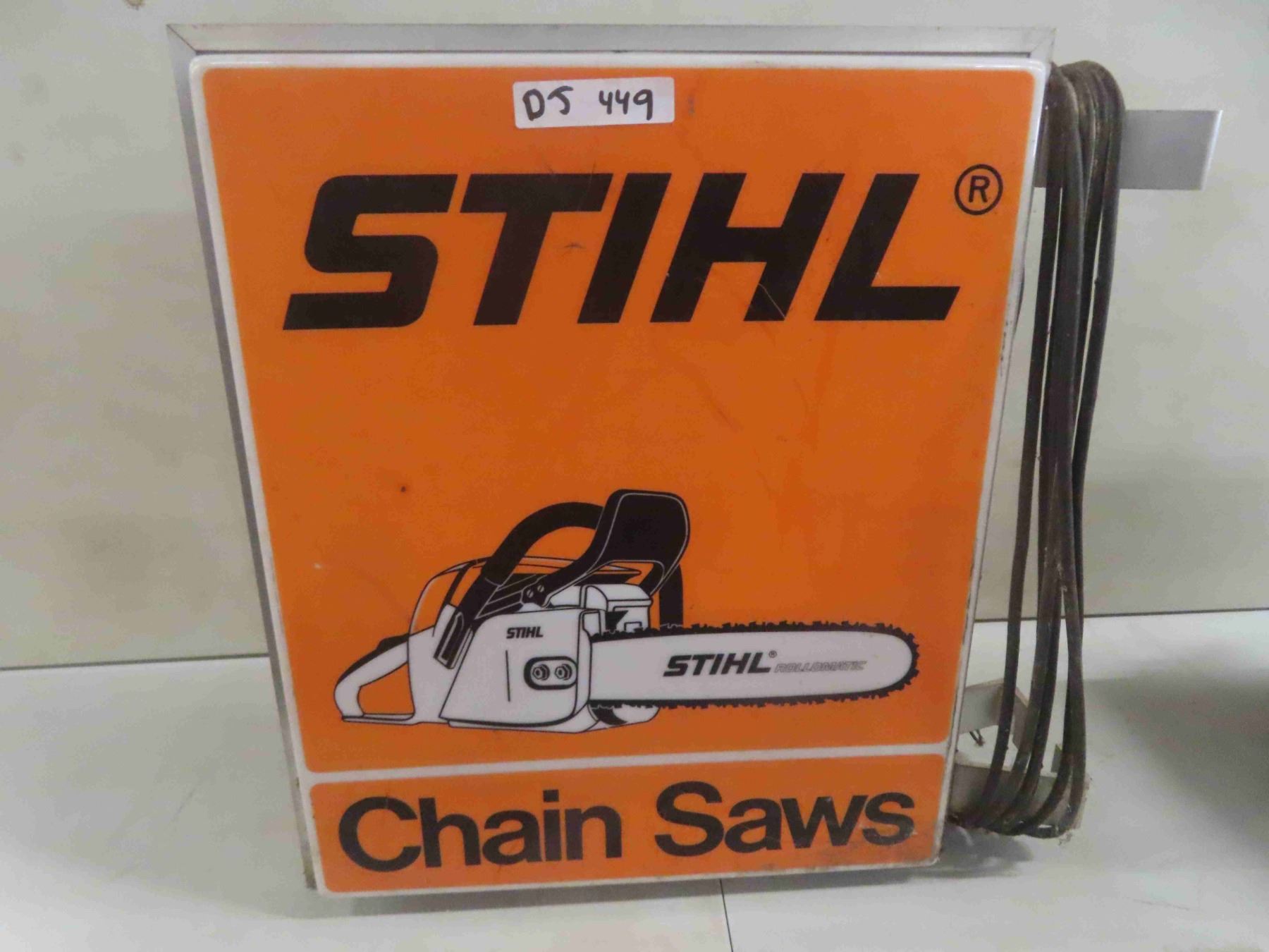 Stihl Chainsaw Light Up 2 Sided Flange with Aluminum Frame + Plexiglass Lens - Sign 20" x 24" plus Mounts