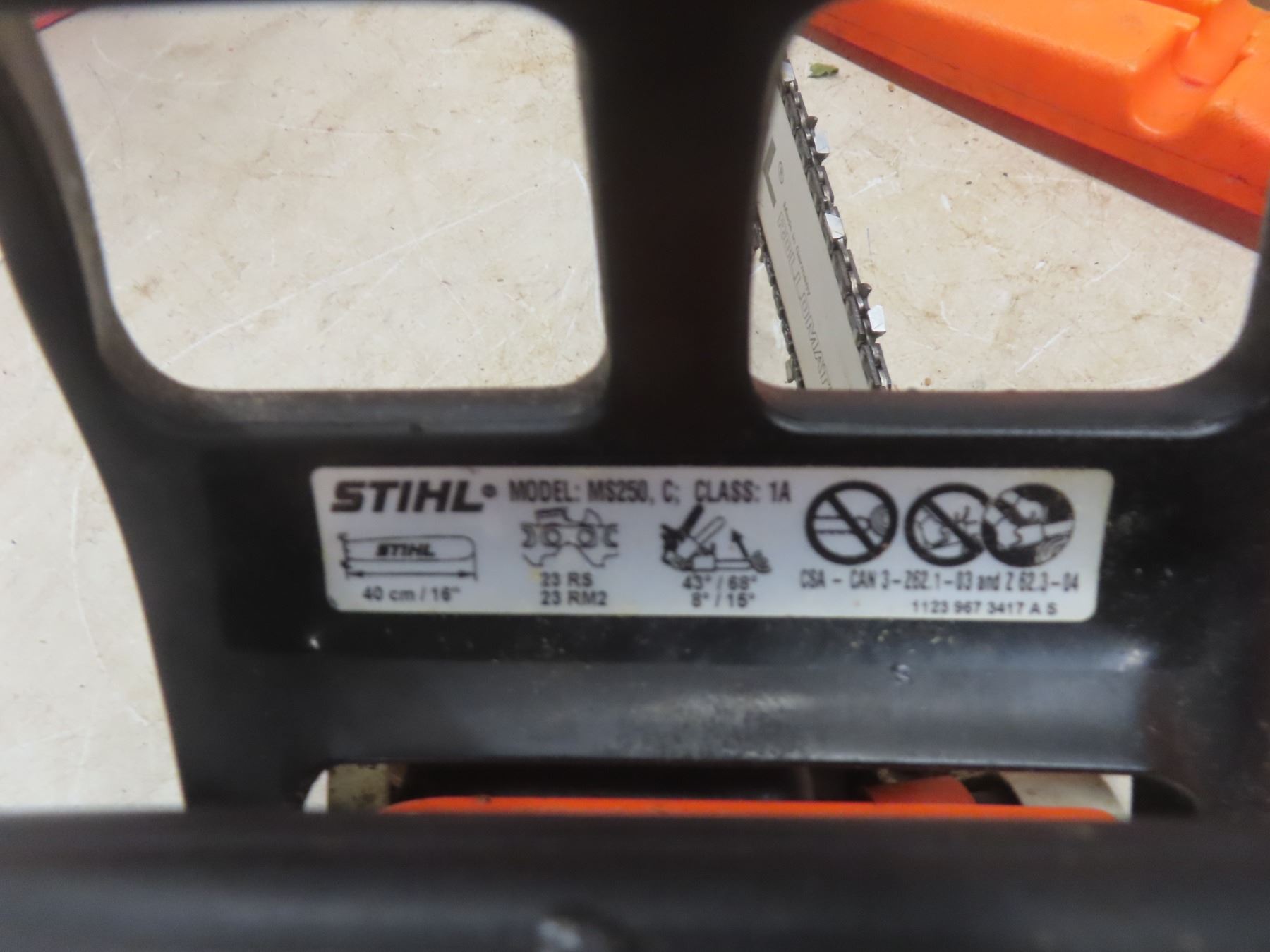 Stihl MS 250 Gas Chain Saw with Hard Case; Used; Includes Extra Chain