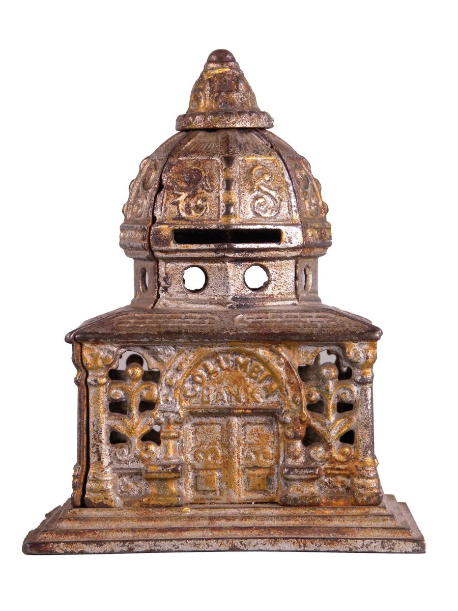 Still Bank for the Bank of Columbia #37. Made by the Kenton Hardware Mfg. Co. Kenton, OH. Very good original condition. 3 1/2 X 4 1/2 X 3 1/2 inches.