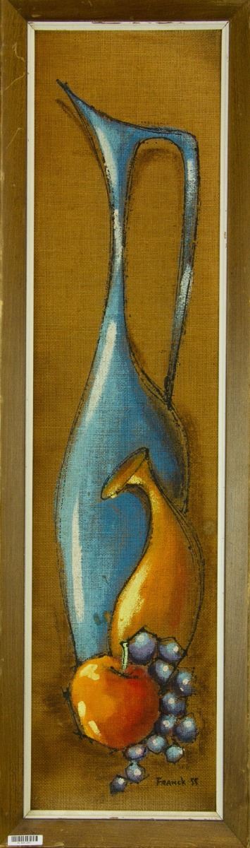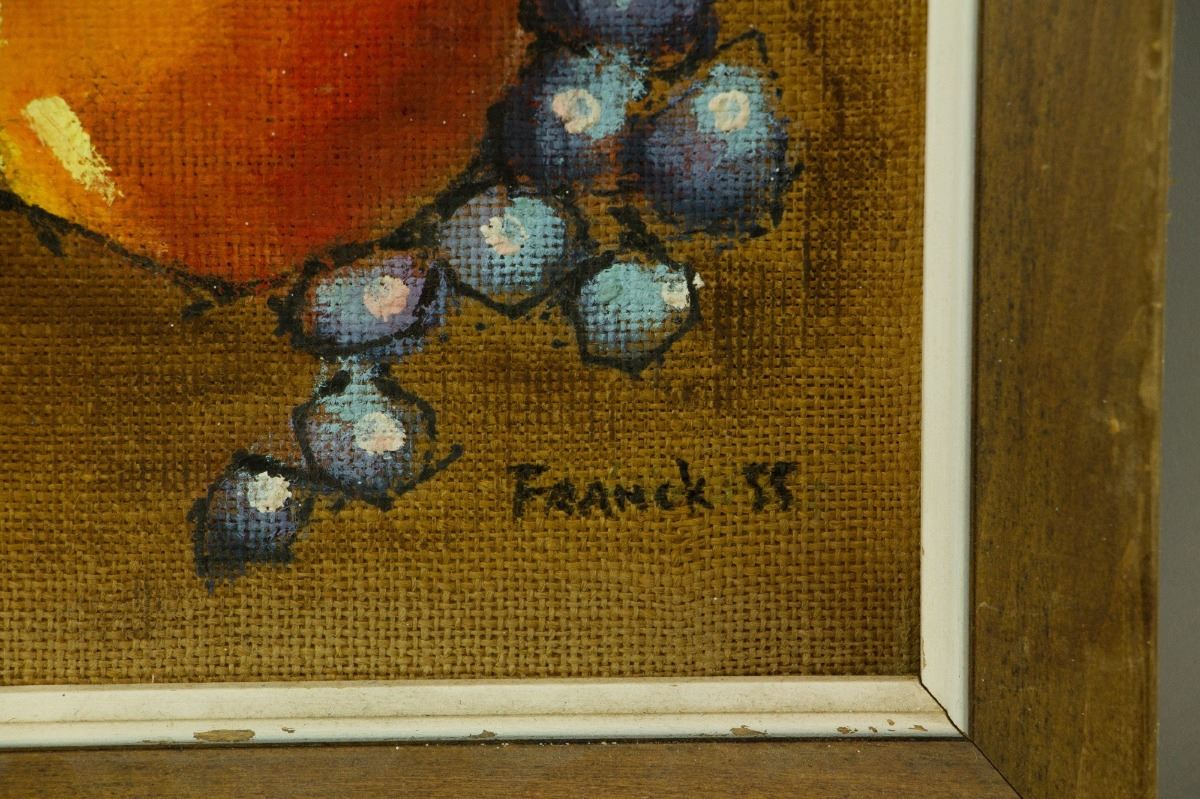Still life; oil on panel with frame; signed Frank on lower right corner; 24 cm × 100 cm