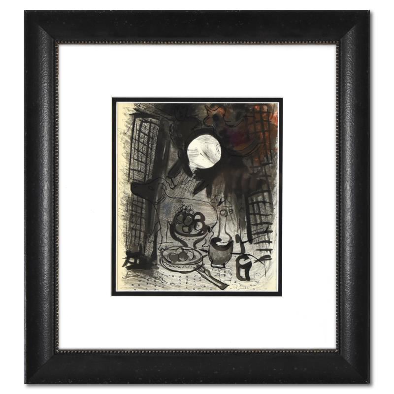 "Still Life" is a lithograph on paper by Marc Chagall (1887-1985). This piece comes framed. Includes Letter of Authenticity. Measures approx. 16" x 17.5" (frame), 8" x 9" (image).