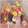 "Still Life" is an original oil painting on canvas, hand signed by Zahra! Measures approx. 32" x 32" (image).