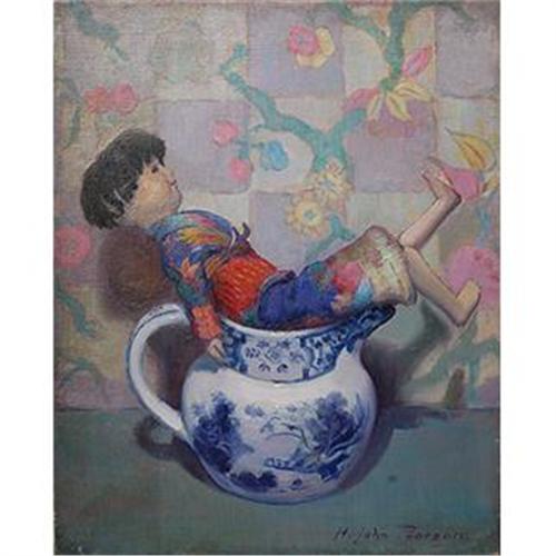 <tr><td>Title:Still Life of a Jug and Japanese Doll by Harry</td></tr>