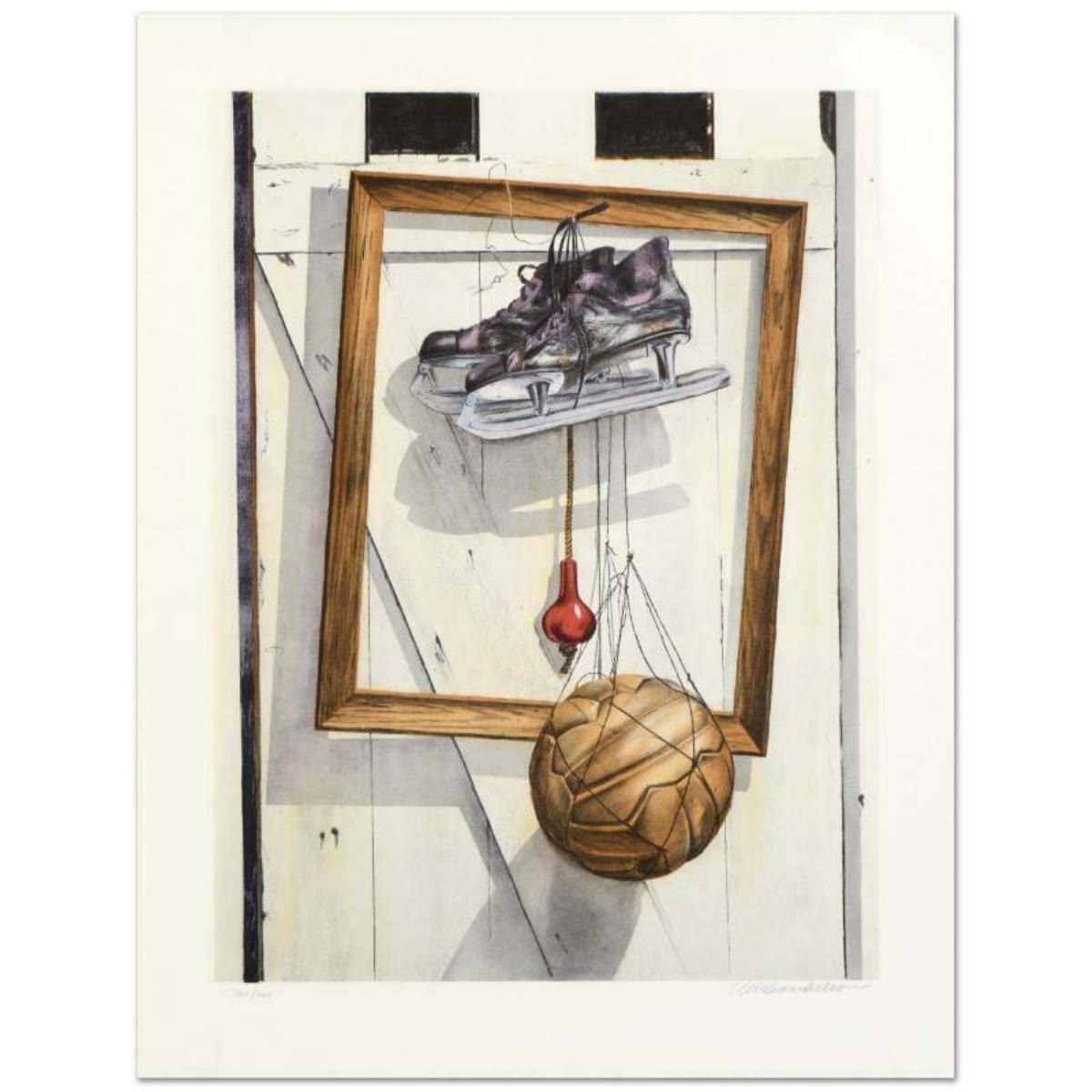"Still Life on Barn" is a limited edition lithograph on paper by William Nelson, numbered and hand signed by the artist! Measures approx. 22" x 28.5" (with border); 18" x 24" (image).