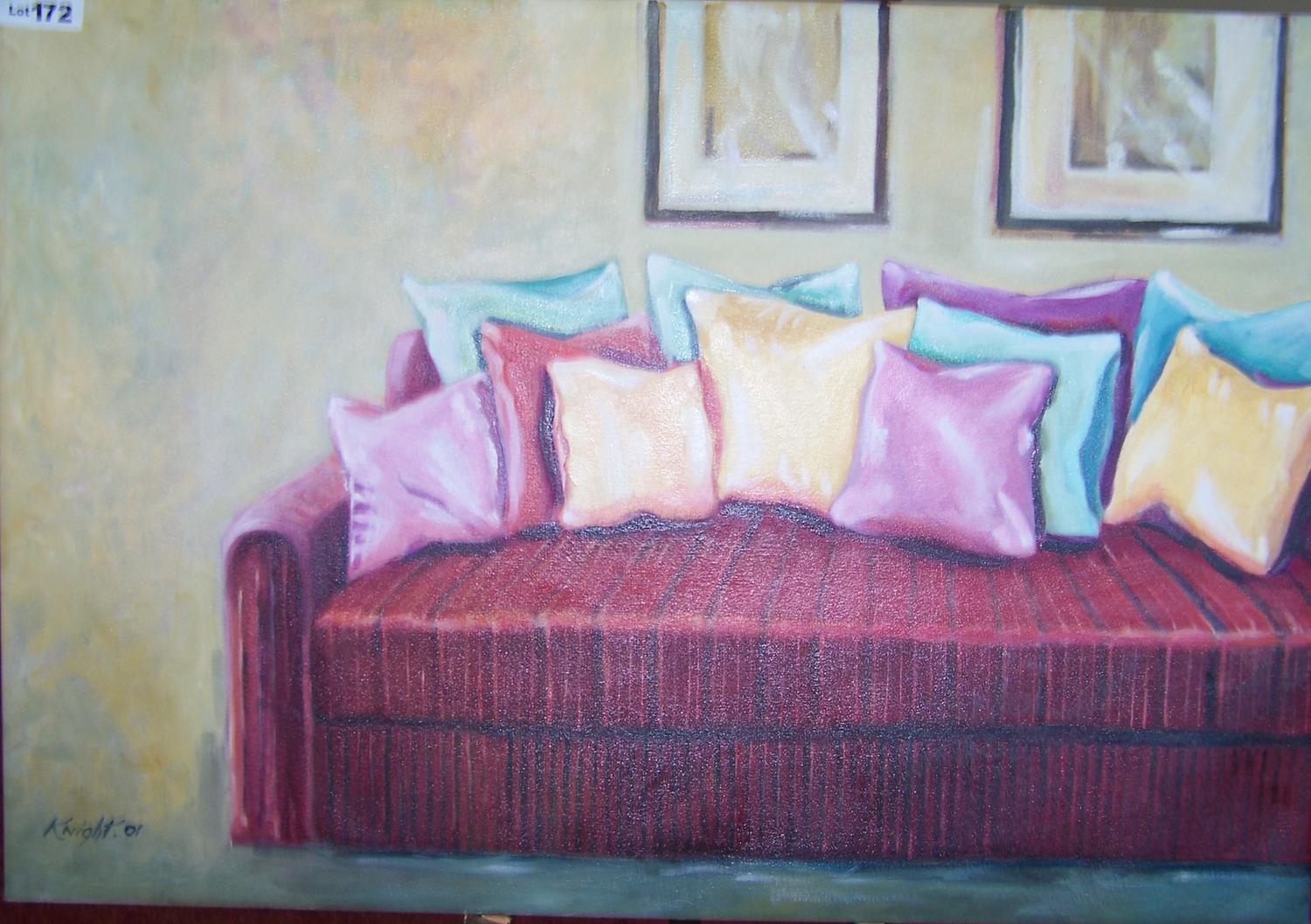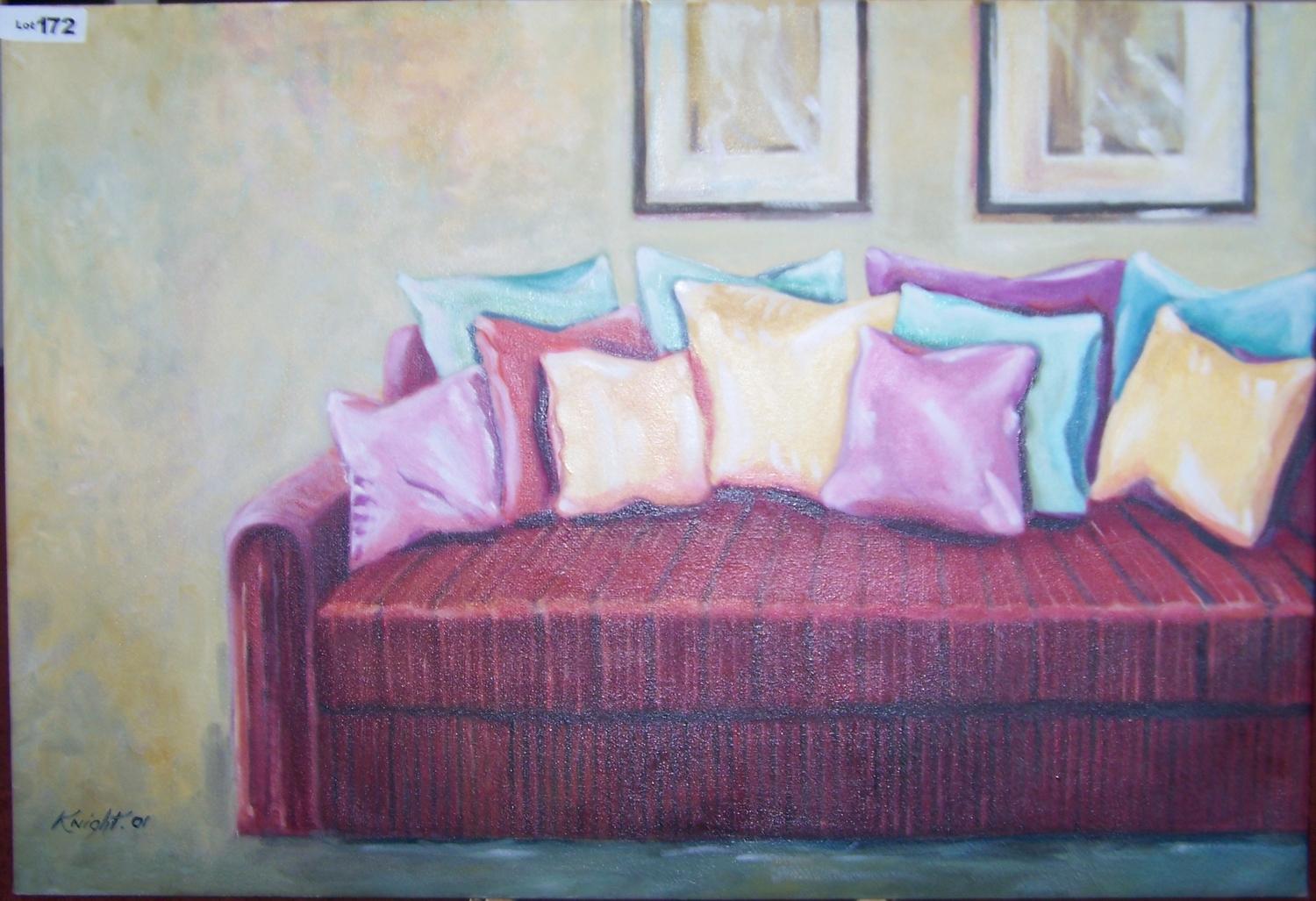 Original Oil on canvas, framed over stretcher bars. 26T X 38W