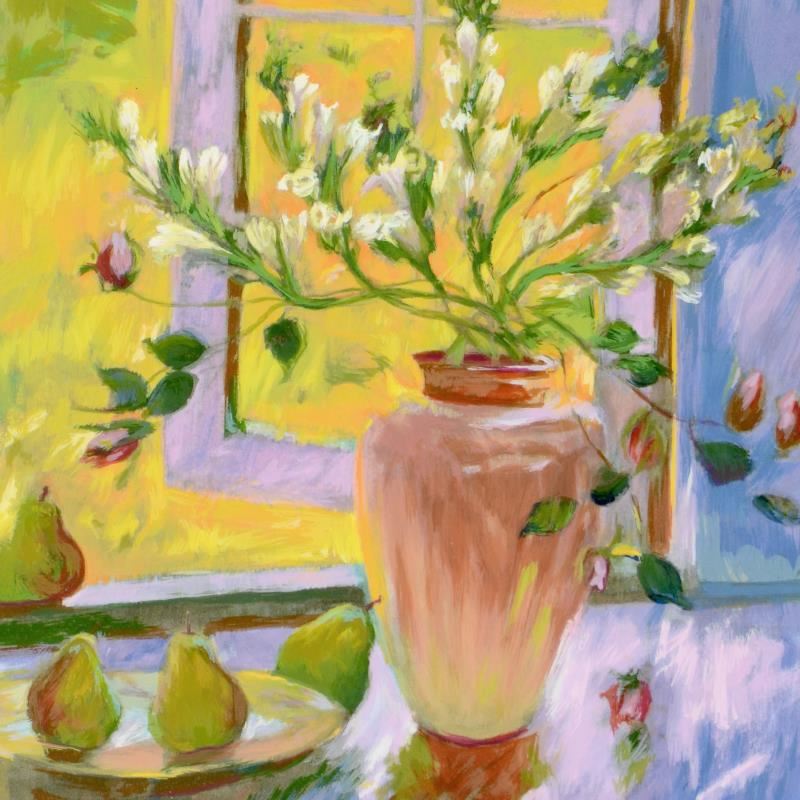 "Still Life with Pears" is a limited edition giclee on paper by S. Burkett Kaiser, numbered and hand signed by the artist. Includes Letter of Authenticity. Measures approx. 20" x 17" (border), 16" x 13" (image).